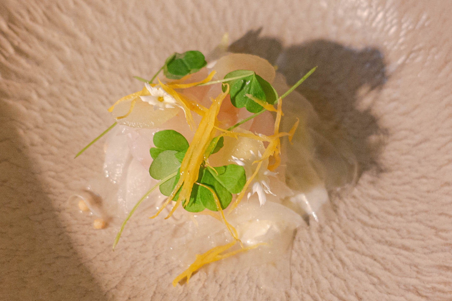 If we ate it by itself, the trout was washed out by the yuzu and left a tart taste on our tongues. The wood sorrel by itself was also too salty so both components had to be eaten together.