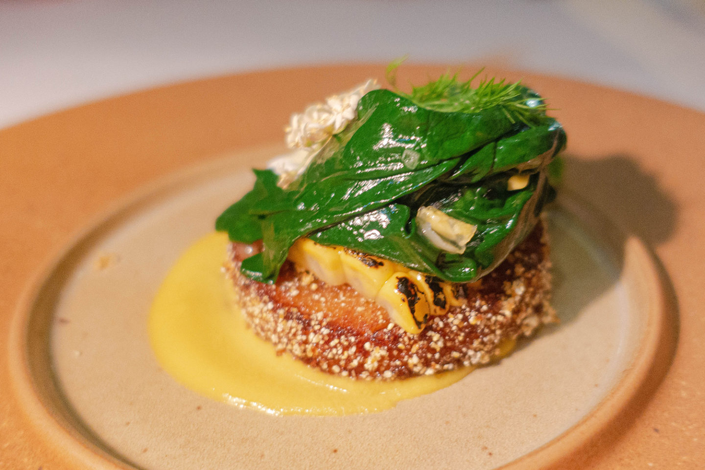 For our second course, we picked the vegan option of sweet corn, macadamia, erbette & black garlic. My mum said this was too sweet however she ate hastily and didn’t even try to put each element on her spoon LOL. Leave it to the expert 😏.