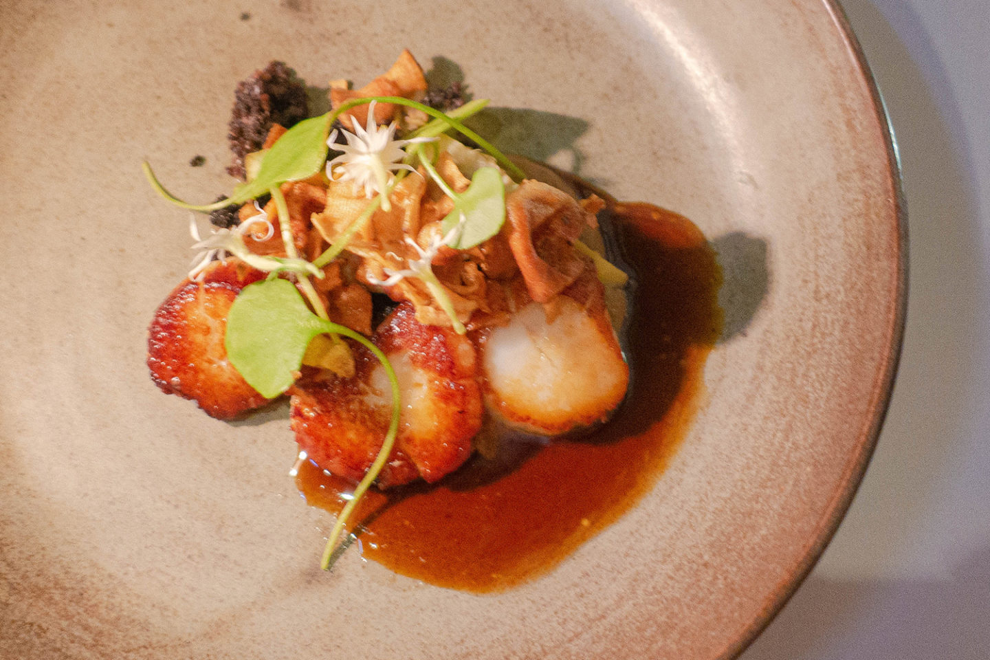 The abrolhos island scallops, artichoke, morcilla & miner’s lettuce was very delicious with a unique flavour profile. The artichoke and morcilla (blood sausage) added a crumbly and crispy texture, with a warm hint of smokiness to it. The scallops were plump and sweet, and the charred side added more dimensional smoke to the bite. It was like being near an umami fireplace. The lettuce were earthy touches that elevated everything.