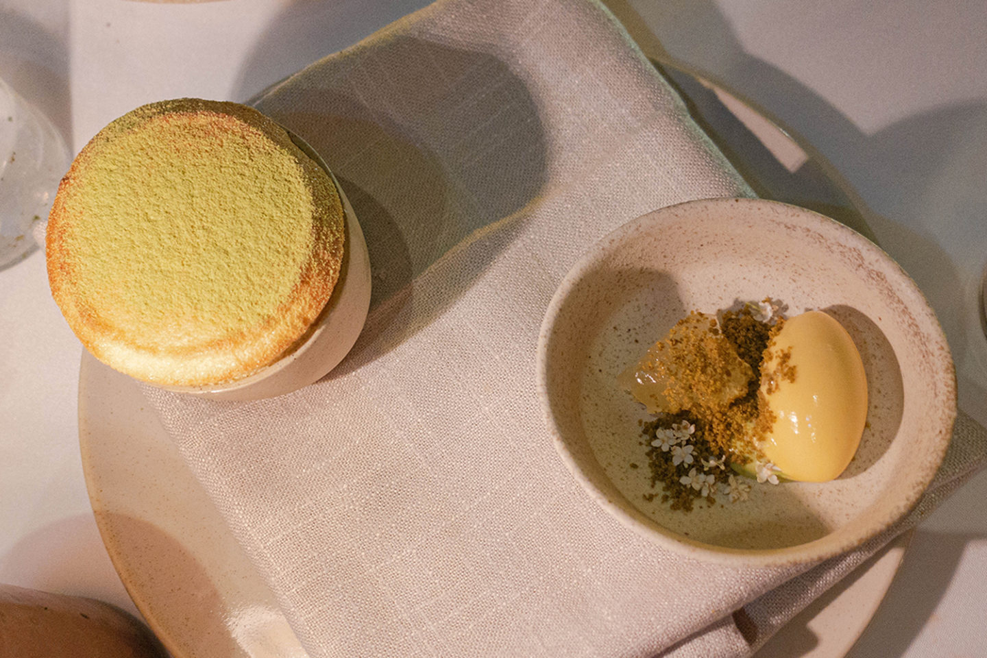 The passion fruit souffle, matcha & yuzu was very sour overall. The yuzu and passion fruit combination was overpowering, especially in the ice cream and in the custard layer underneath the souffle. We tried to balance it by eating a bit of everything but the matcha did not help soften the tartness. The souffle on its own was the most enjoyable part.