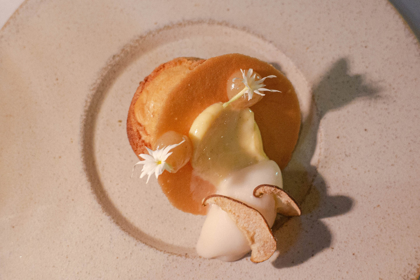 This was a good balance of sweet (corn) and savoury (black garlic). There was an earthy relish to the bite, with a soft Eben flow of Macadamia drifting in to the mouthful. The texture was a soft crunch.