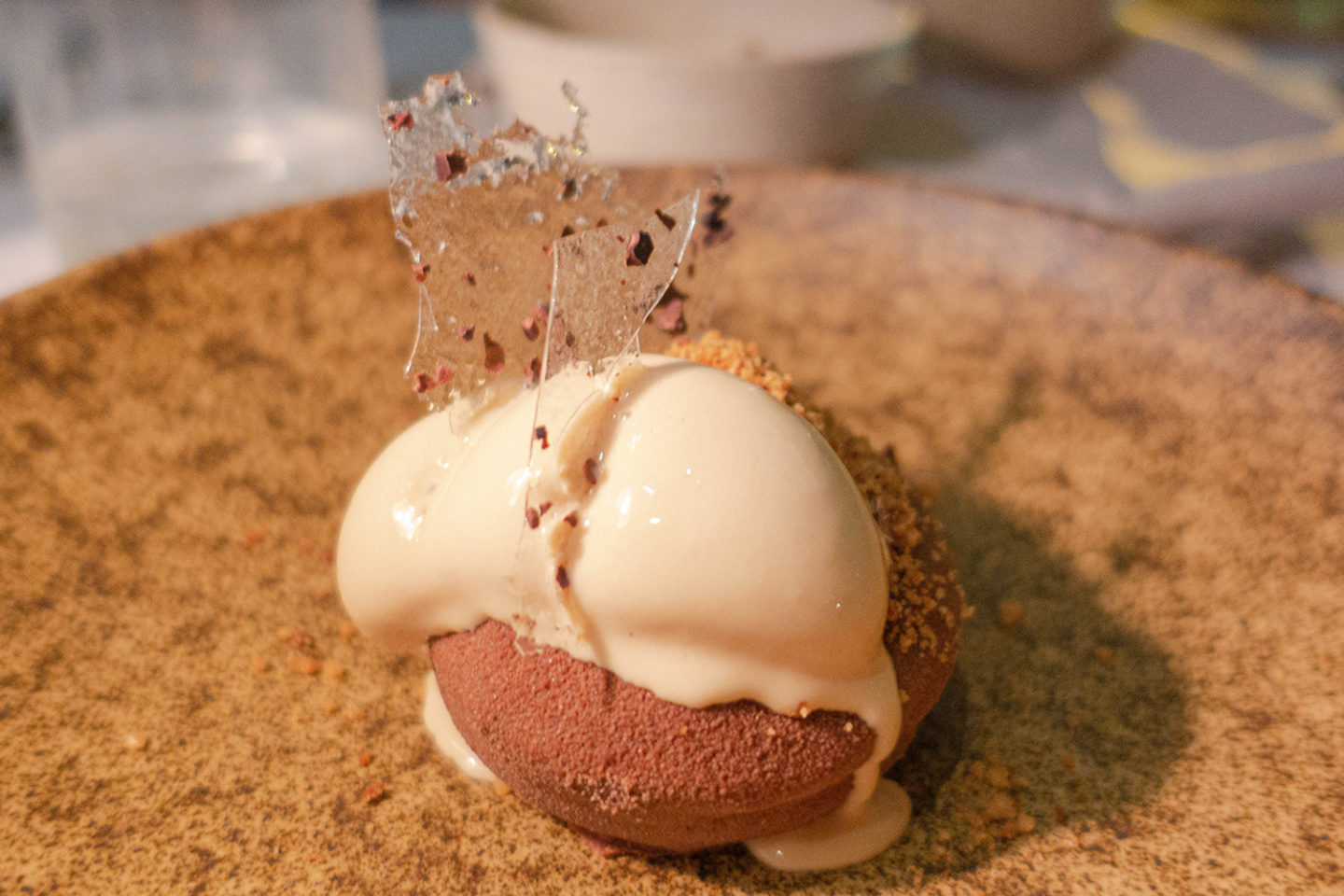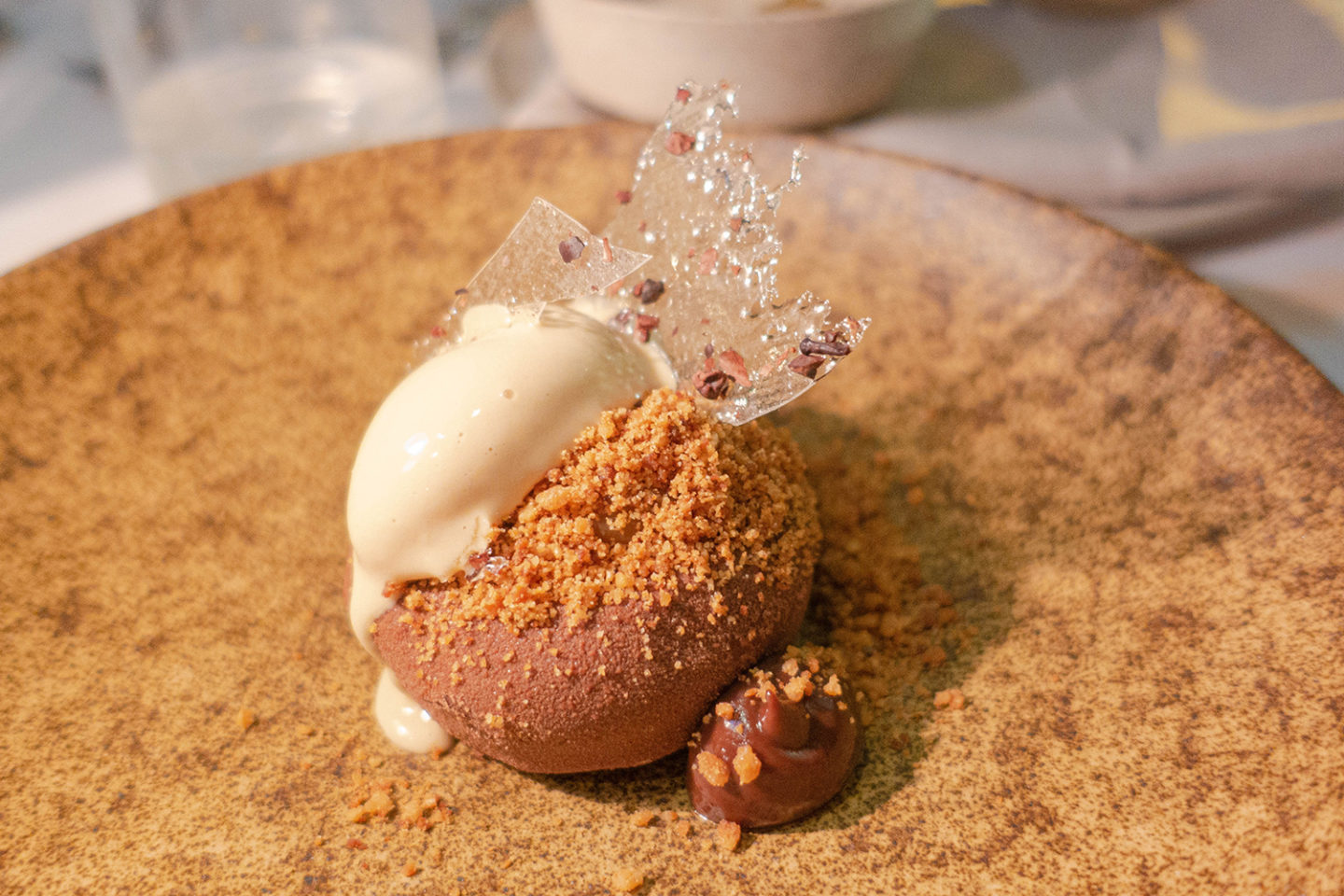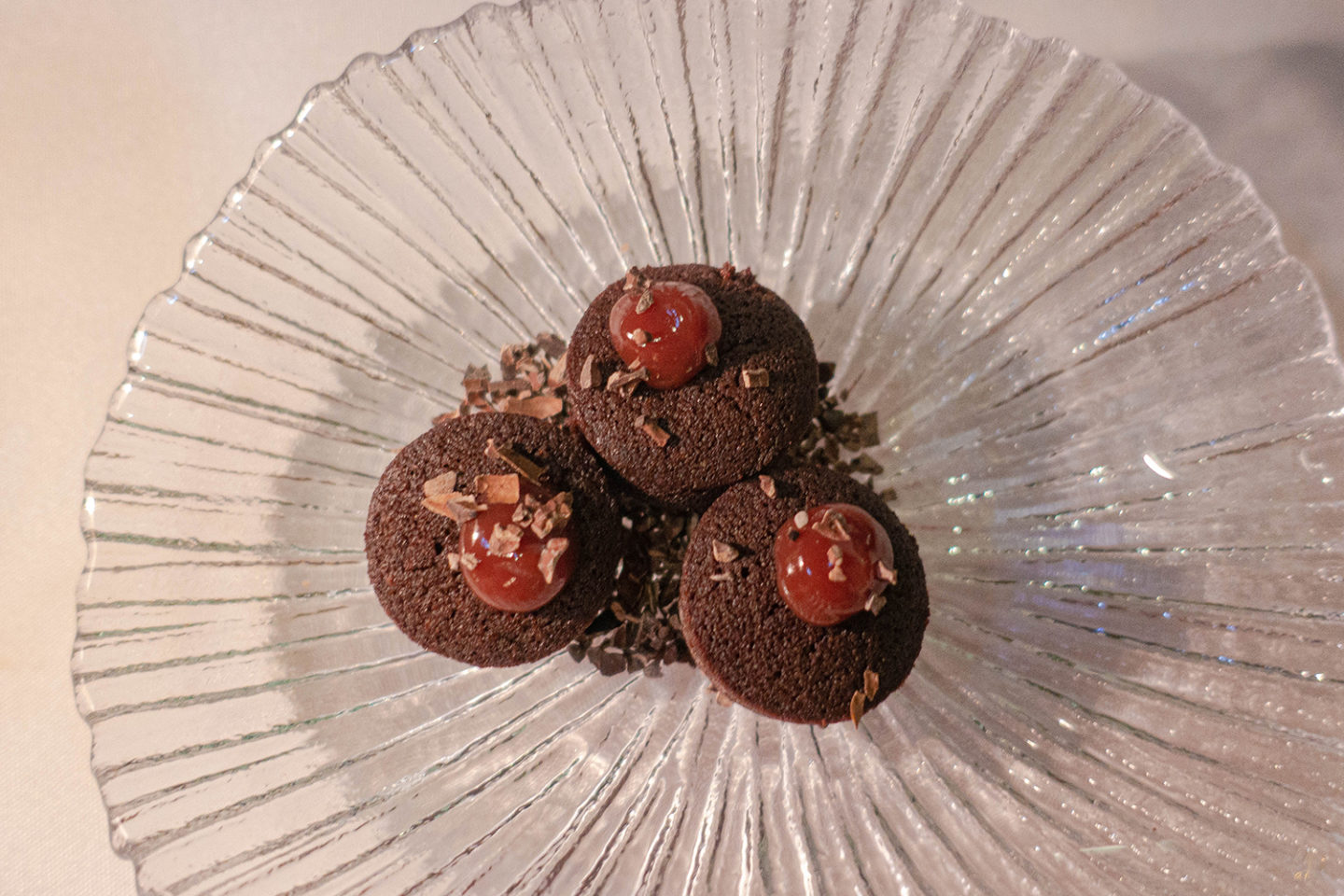 Finally, to end the night, the petit fours. This was a dense and rich chocolate sponge ball with cherry filling and chocolate flakes. We were so full by the end of this meal that we struggled to eat it but 😮💨 I did not pay $500+ to have leftovers.
