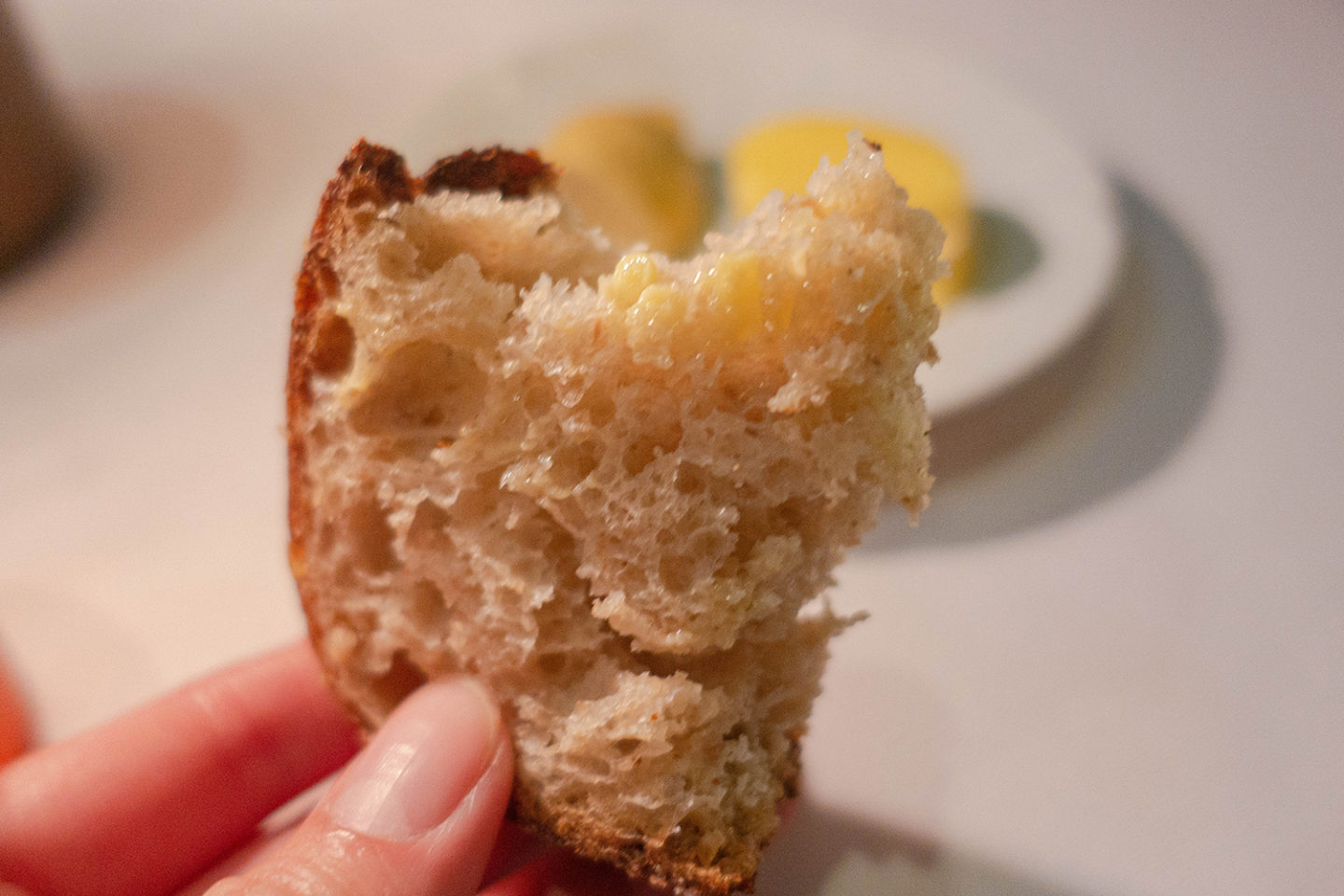 Next was the staple bread and butter. The bread was baked in house, a white kind with fluffy interiors and a soft crust. The accompanying butters were a salted Pepe Saya butter (no description needed, just pure yum! 🤤) and a creamy butter infused with kombu and chicken juice. This was b-o-m-b! It was so rich and flavourful.