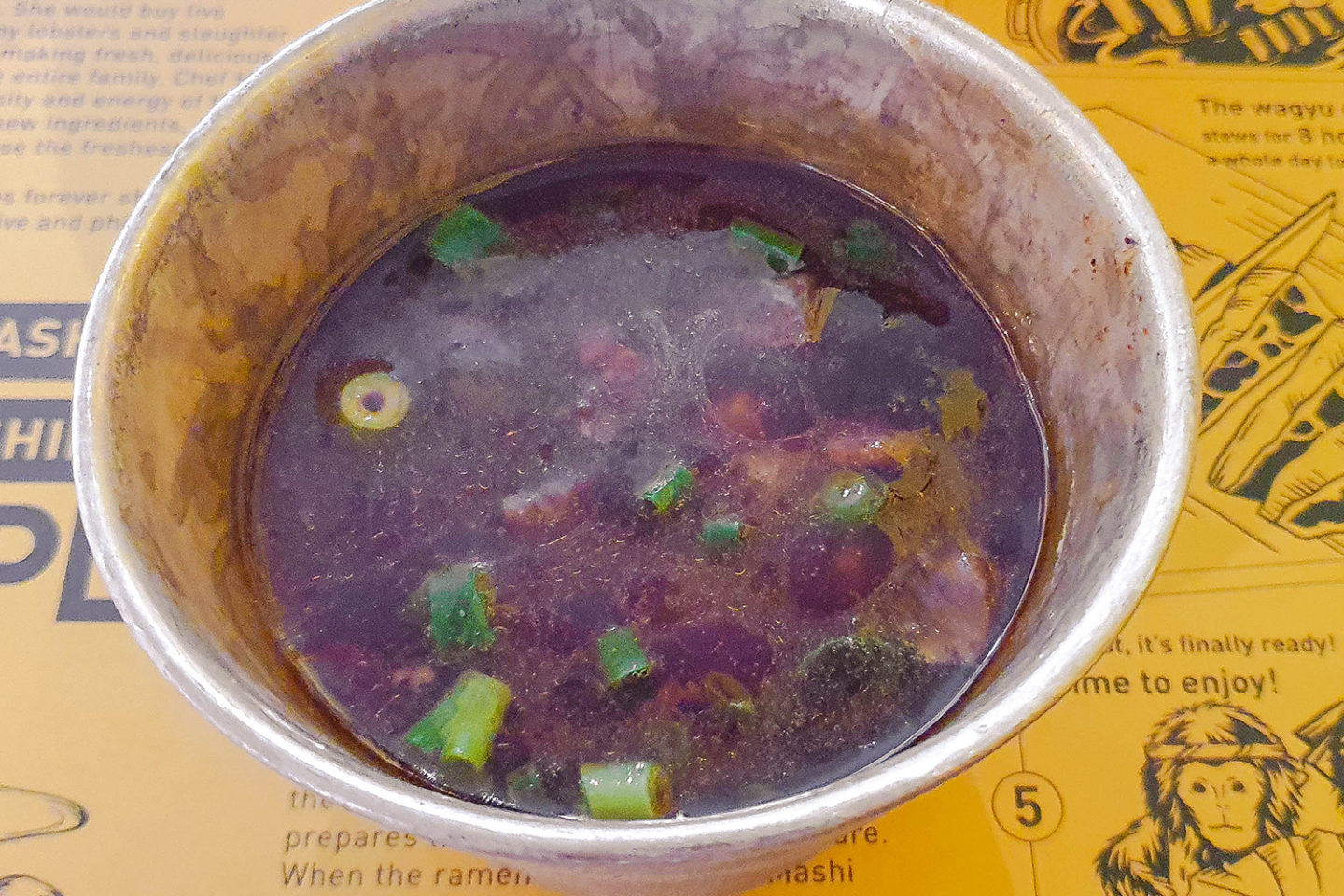 The noodles were soft and chewy. The low cooked Ozaki beef was very tender and moist with fatty oils. Its premium cut was enhanced in the rich, flavourful, 24-hour stewed Wagyu bone broth. My gosh, this broth was viscous and so dark in colour, having soaked all the cow’s goodness in the long stewing hours. The added chili was a nice and enjoyable spicy heat.