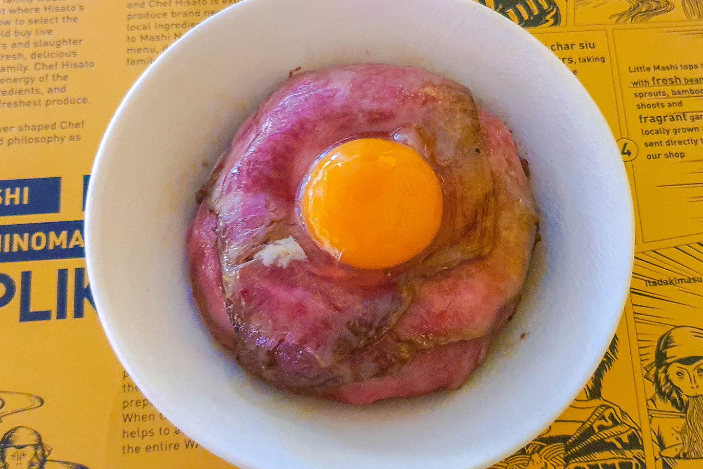 The wagyu donburi reminded us a bit of the volcano in Tokyo. Each Wagyu slice was very thin, medium rare and seared nicely. It wasn’t melt-in-your-mouth grade beef though, because there wasn’t any sauce to give it that juicy touch. This bowl relied heavily on the runny yolk. The rice was white, fluffy and a good portion.