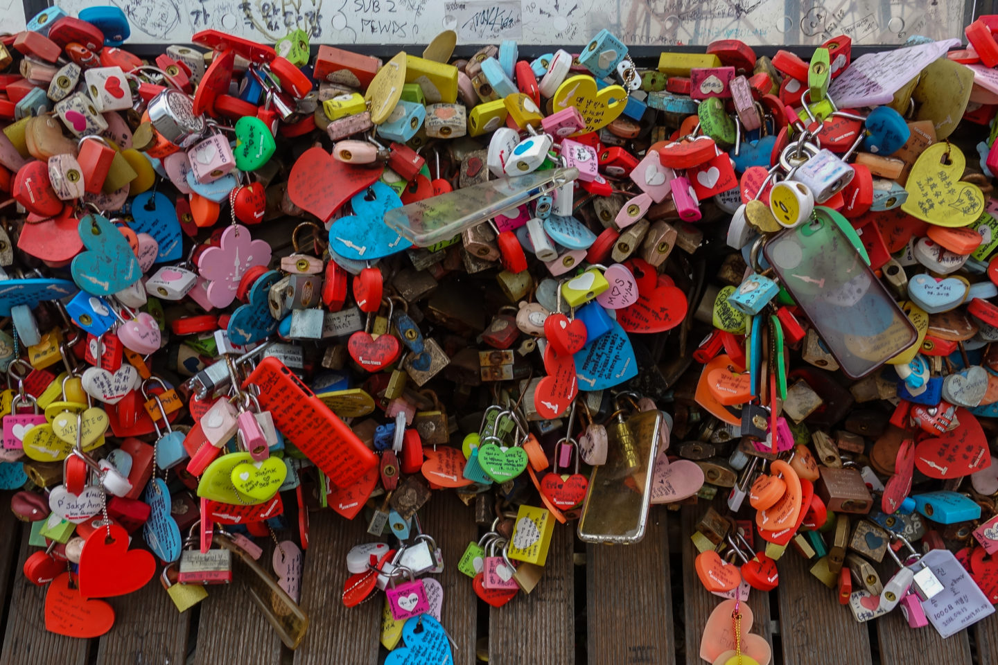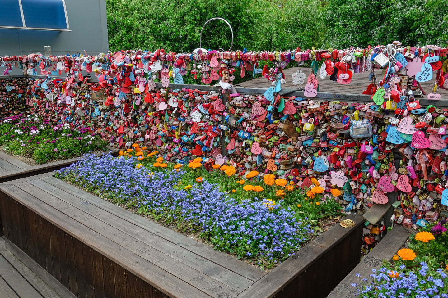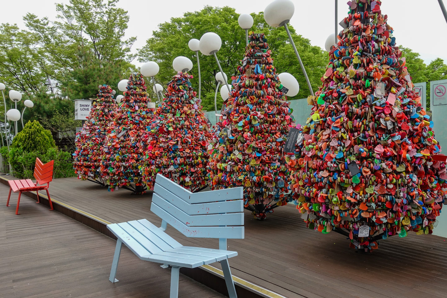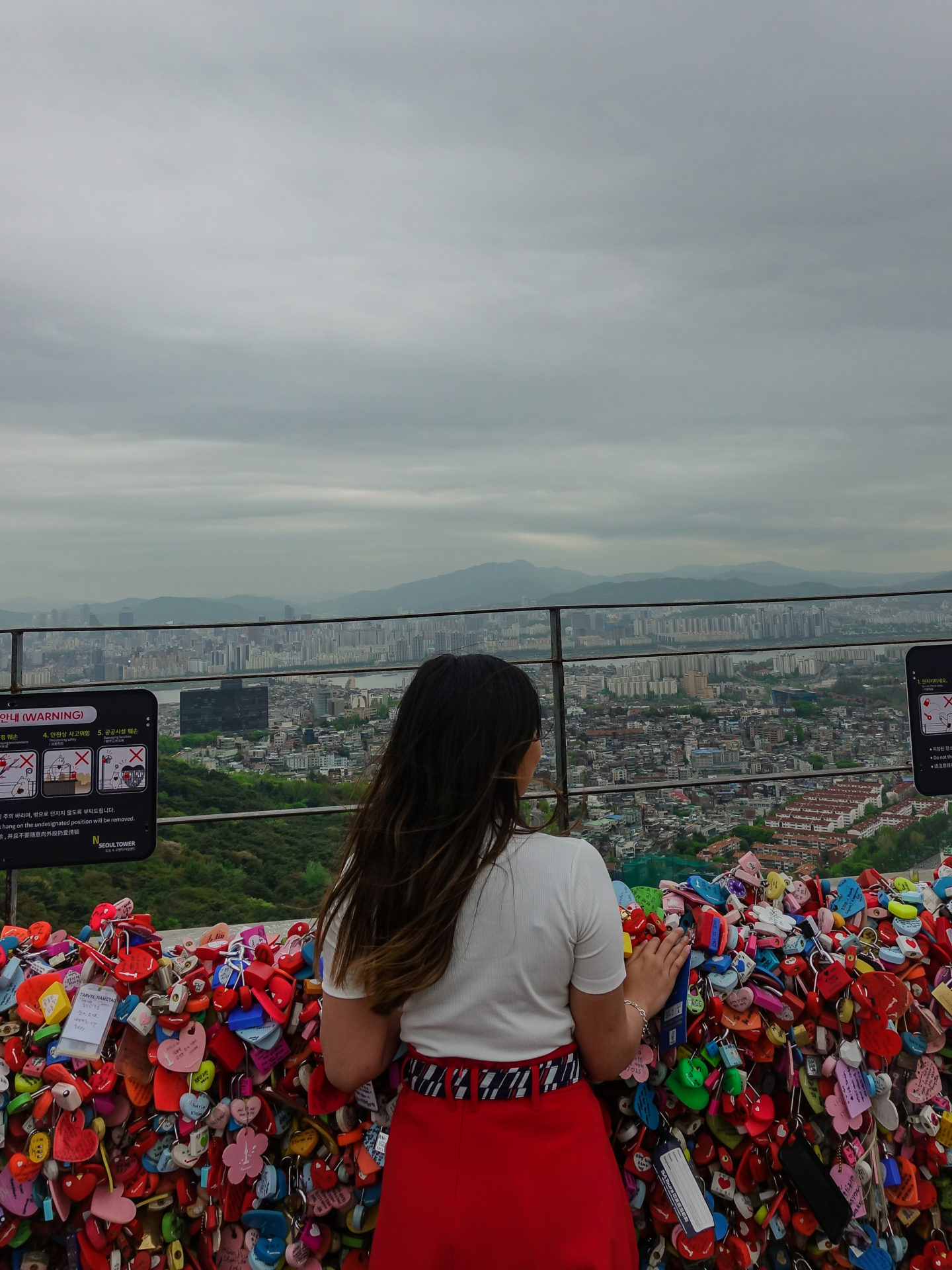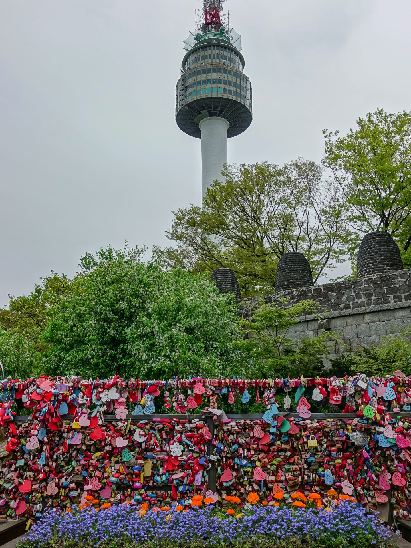 N-Seoul Tower, aka Namsam Tower, is a 236-metre tall communications tower in Seoul, South Korea. There are a lot of tourist attractions around the base. One of the popular things to see, and participate in, are the love locks. Visitors can purchase a lockset (lock, keys, pen) for ₩10,000 and lock in their love for eternity 🧀.