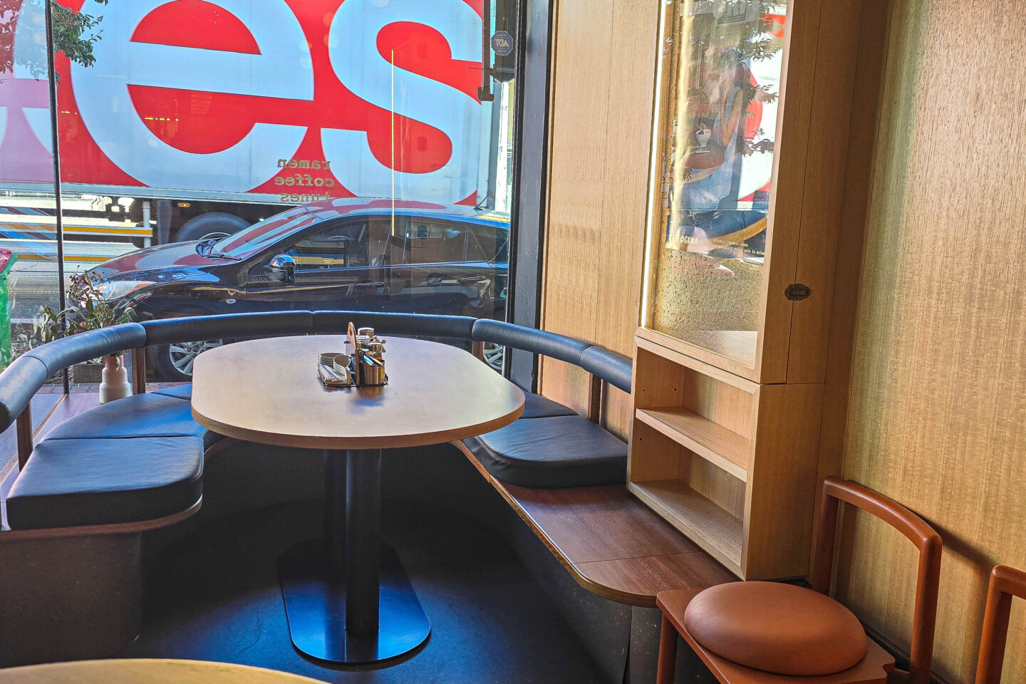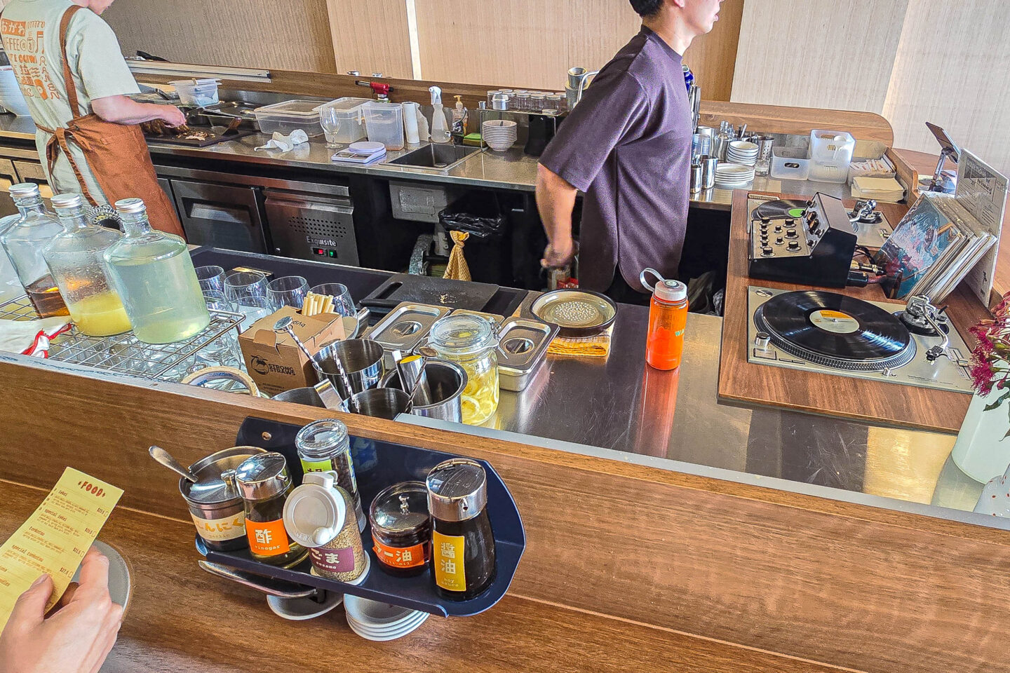 The cafe vibes are ramen, coffee and jazz music. When seated at the counter, we were able to peer into the music station.
