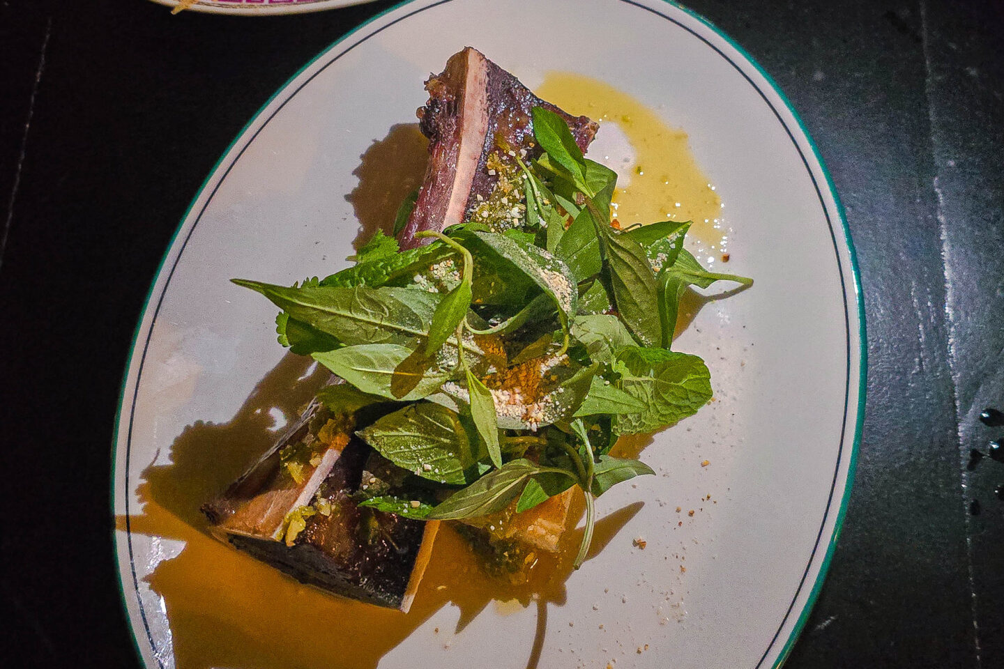 The roasted bone marrow was rich and silky, complemented by fragrant Thai herbs and sticky rice. It was $24
