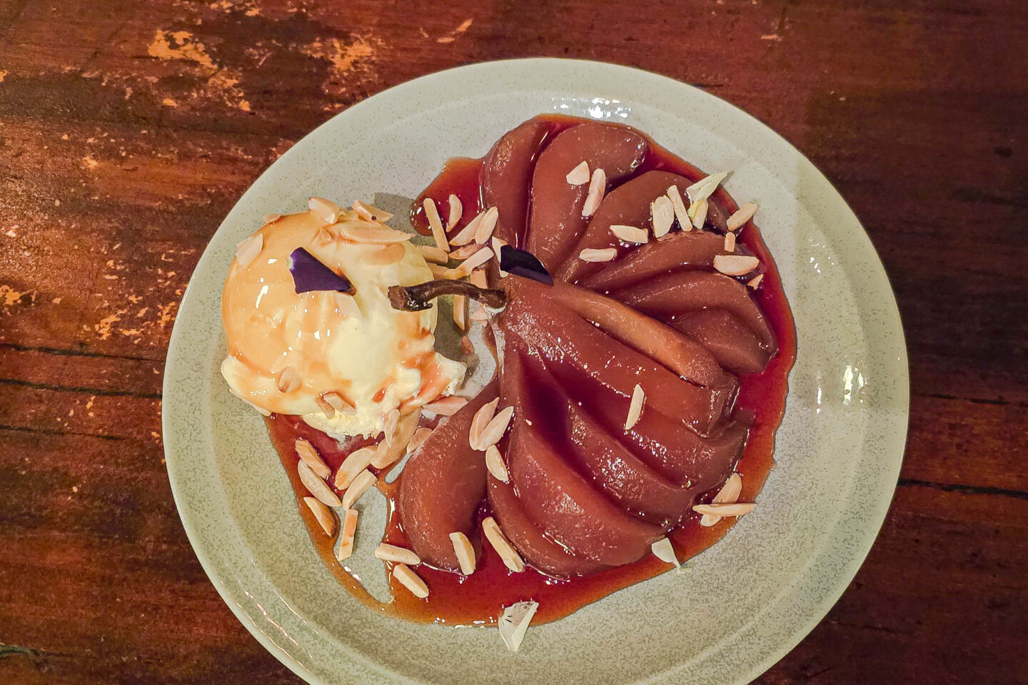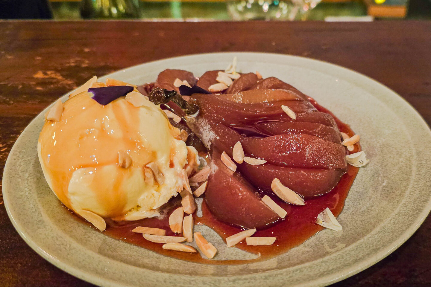 This dessert was amazing! A pinot noir poached pear for $16, with ice cream and crunchy nuts. The poached pear was so good, balanced out by the nuts. The ice cream would have been better if it wasn’t Bulla vanilla ice cream 😂.