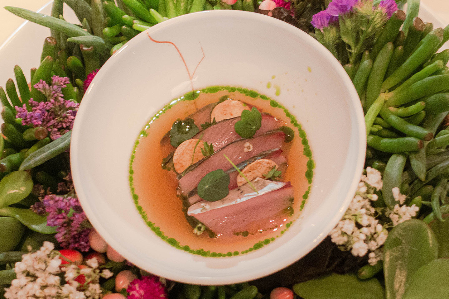 Our showstopper display of fauna and succulents was changed from the king fish to the bonito fish. Where the previous version was more of a complex palate cleanser, this bonito with mushroom, thyme, and pines was serendipity on our taste buds 🤤.