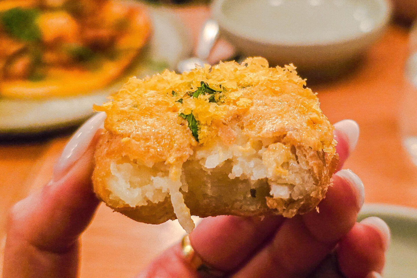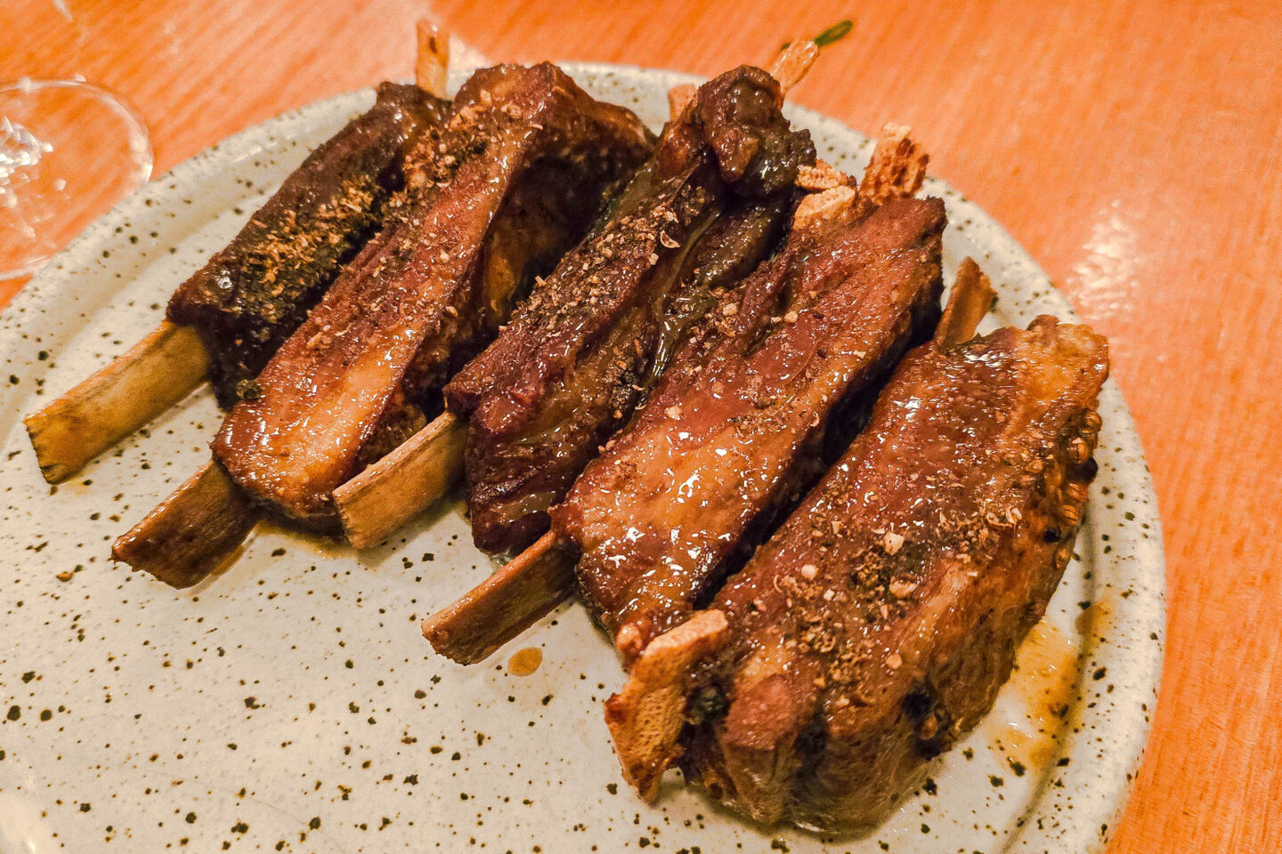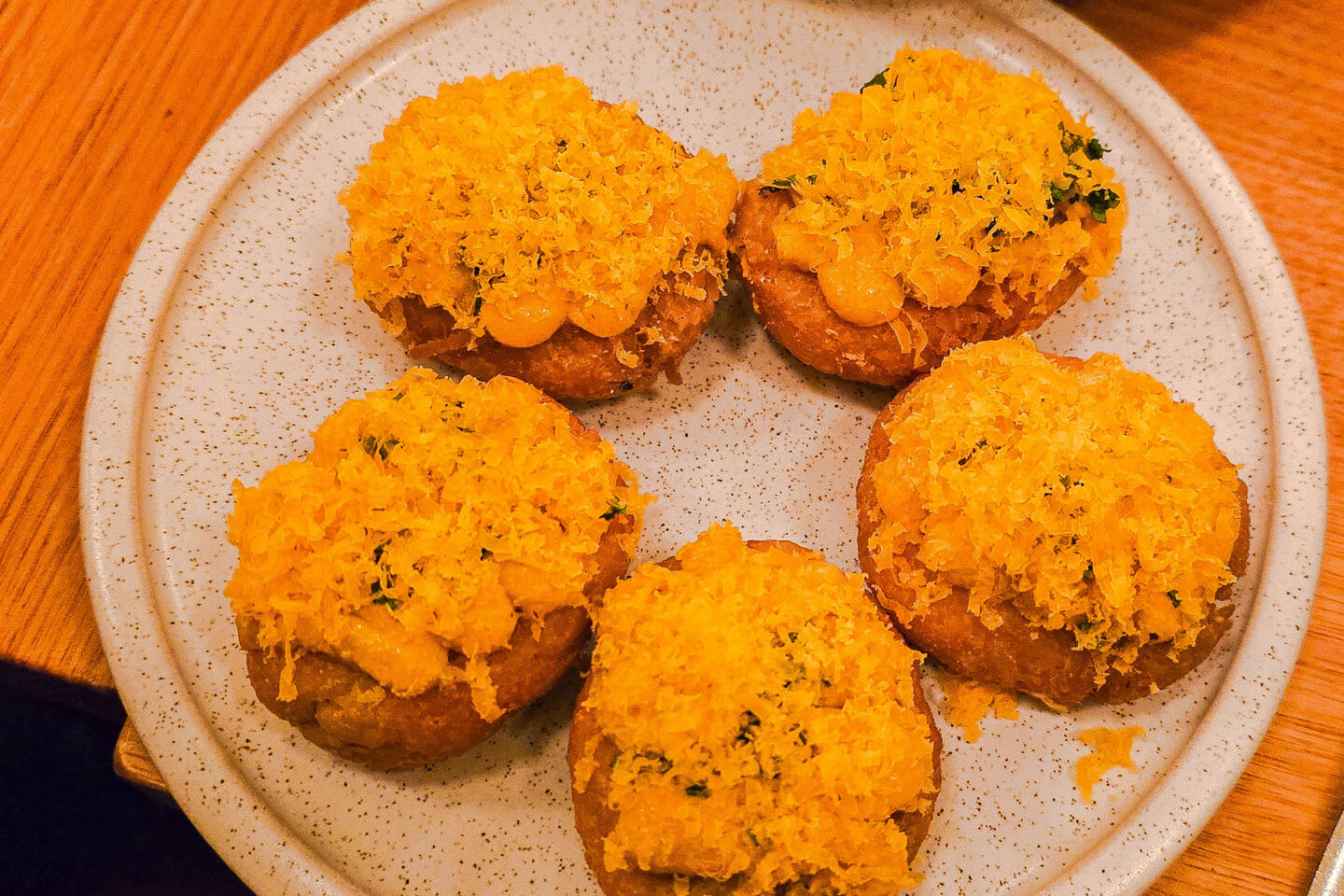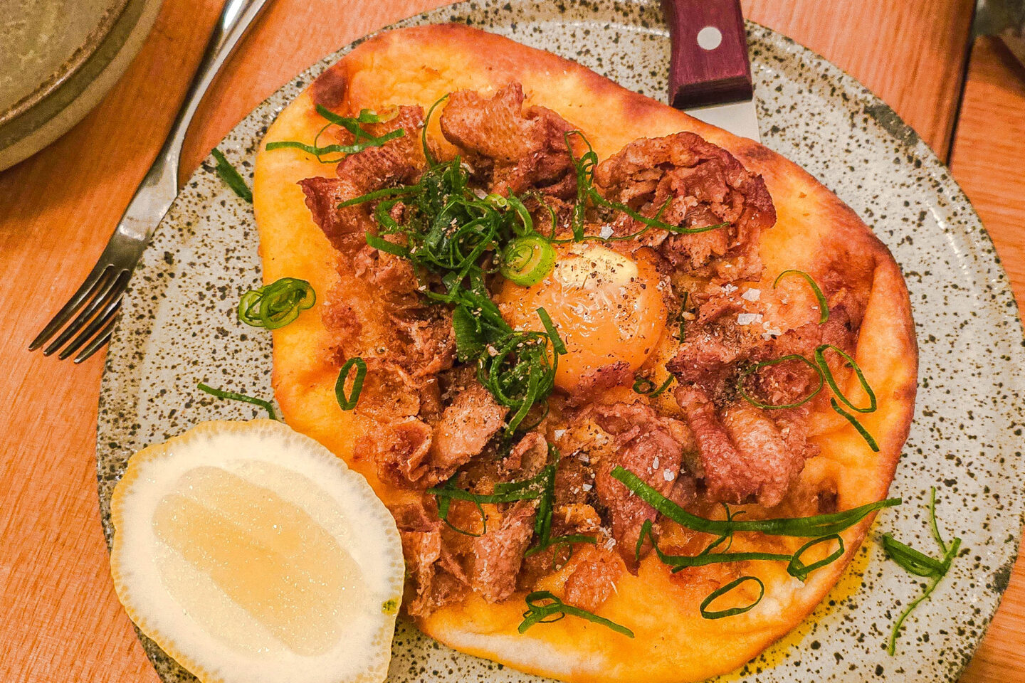 These wood-roasted pig’s head ‘sisig’ tacos were served with a crispy, savory filling, topped with velvety egg butter for a rich texture. A squeeze of tangy calamansi added the perfect citrusy punch. It had a moist, soft mouthfeel. It was $13 each.