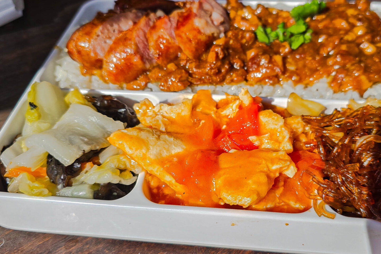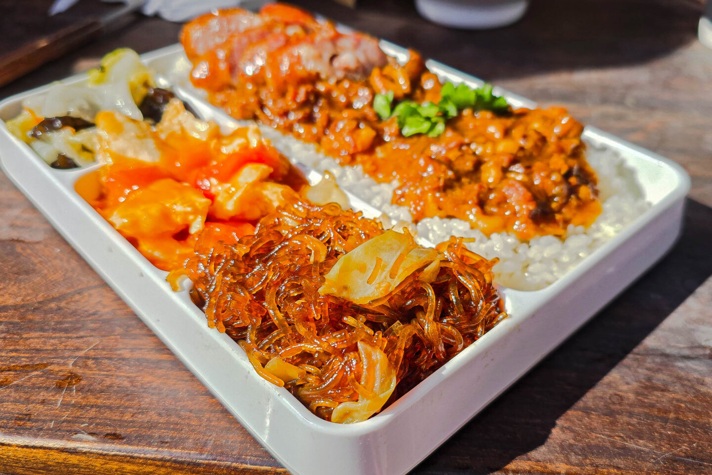 The sausage had a nice spice and season to it, although it was nothing compared to the ones we had in Taipei. The glass noodles were delicious – a good soft texture with a sweet soy glaze. The egg and tomato was homey and comforting. The mushrooms were blander to balance out the overall bento.
