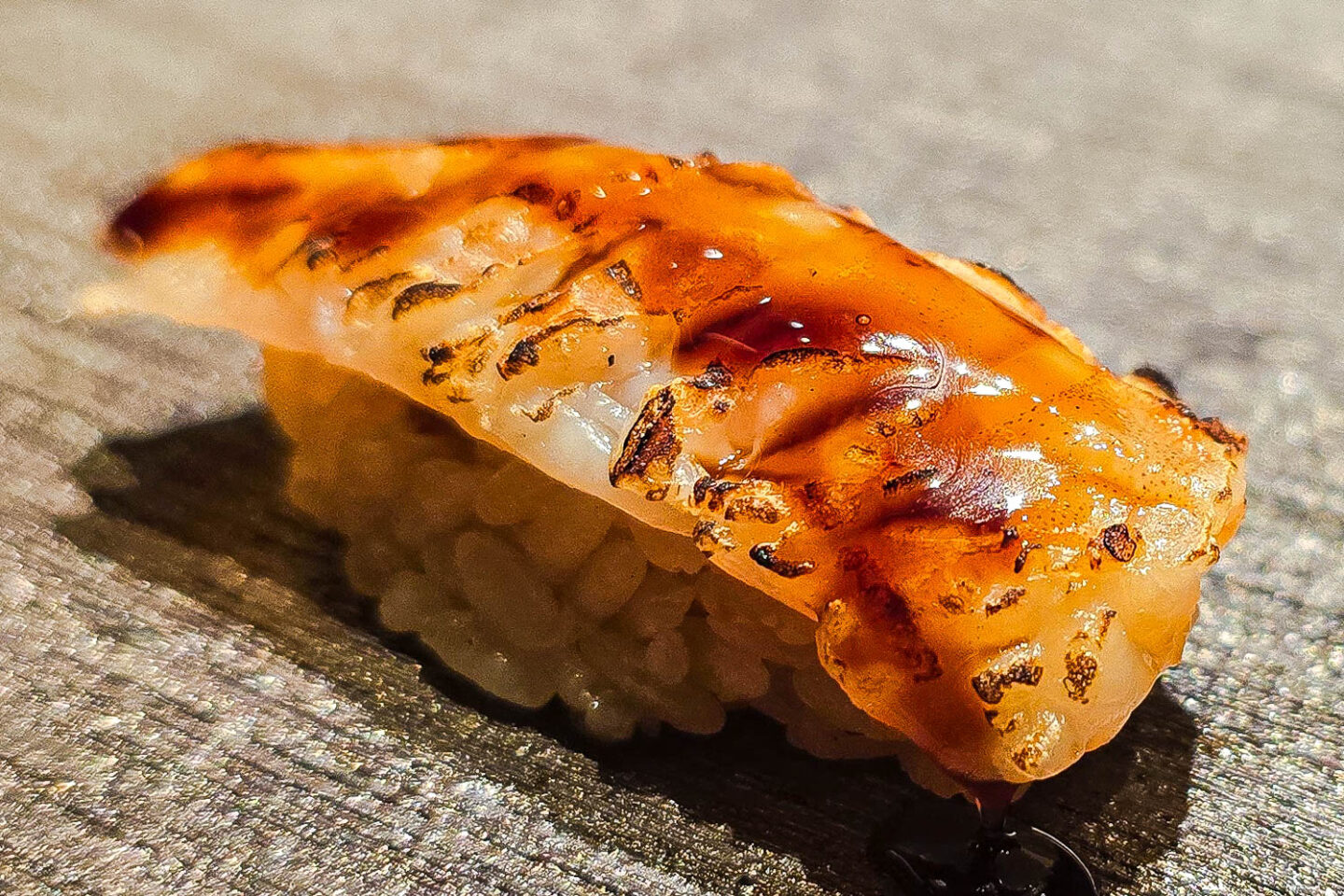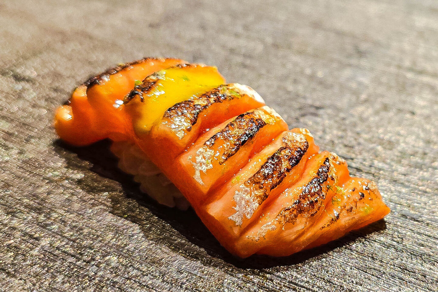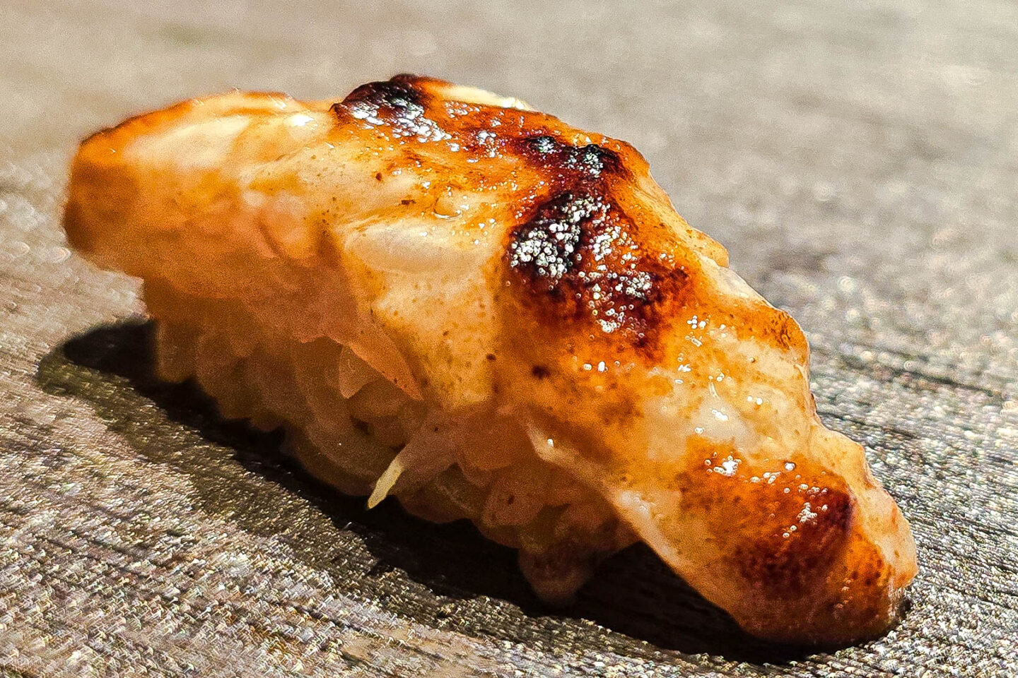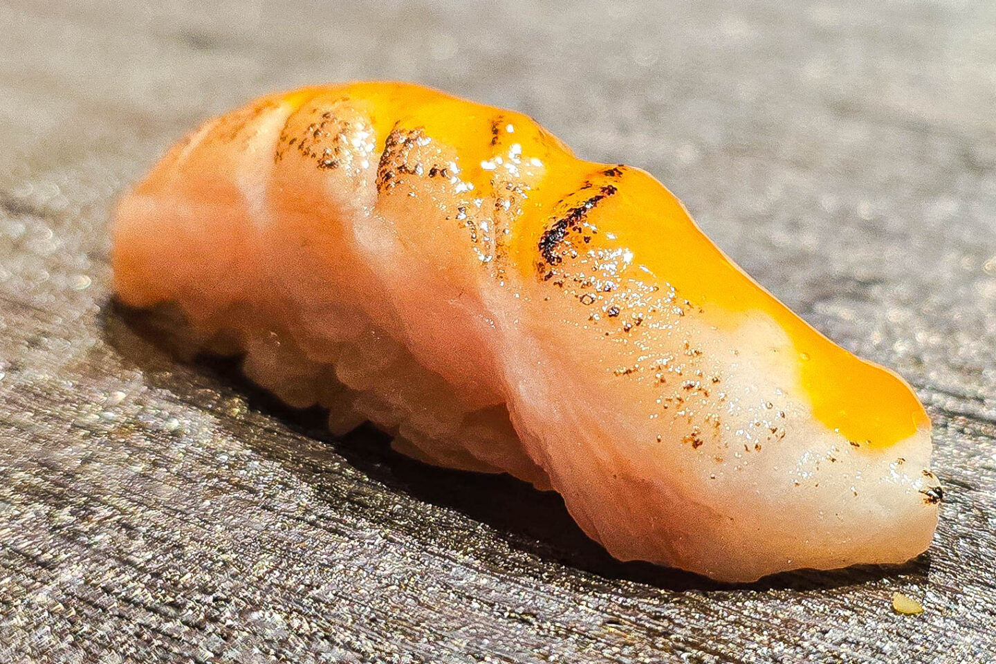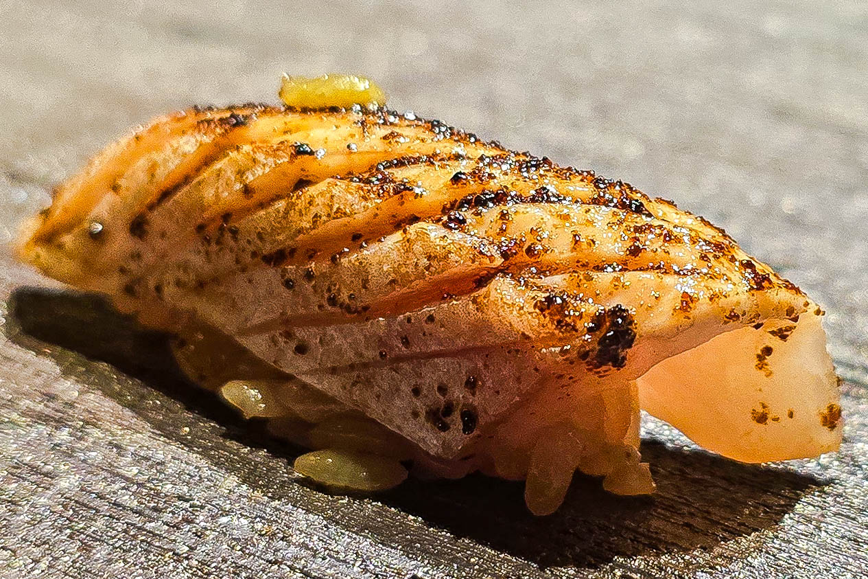 Next was a seared imperador nigiri brushed with egg yolk. It offered a silky, smoky bite enriched by the yolk’s golden richness.