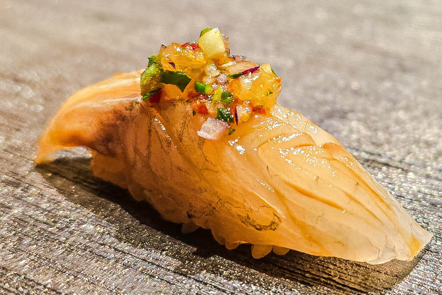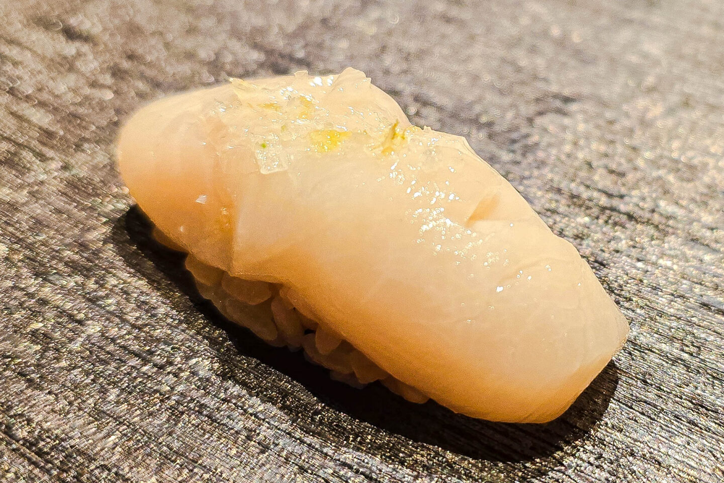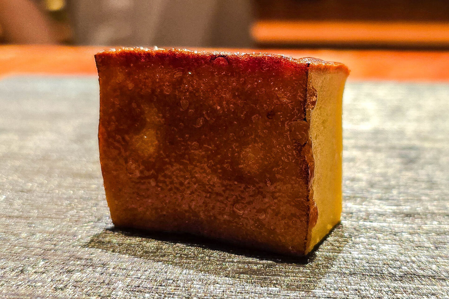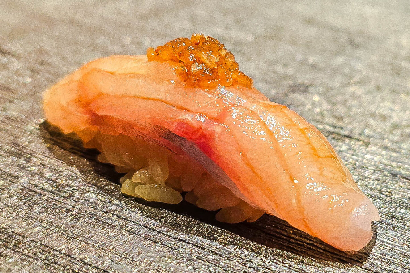 Next was a seared imperador nigiri brushed with egg yolk. It offered a silky, smoky bite enriched by the yolk’s golden richness.